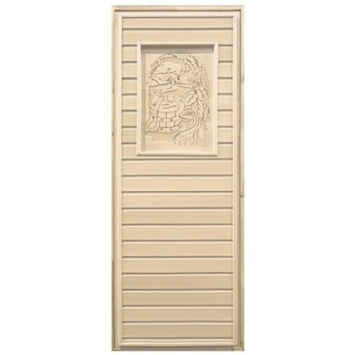 Дверь для бани деревянная глухая с рисунком 1900х700мм. коробка осина