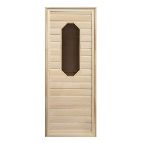 Дверь для бани деревянная с восьмиугольным стеклом 1900х700мм. коробка осина