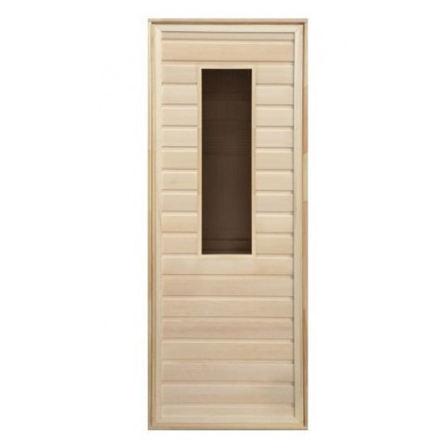 Дверь для бани деревянная с прямоугольным стеклом 1900х700мм. коробка осина