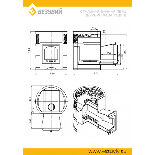 Открытая каменка на 110-120 кг камней в металлическом кожухе